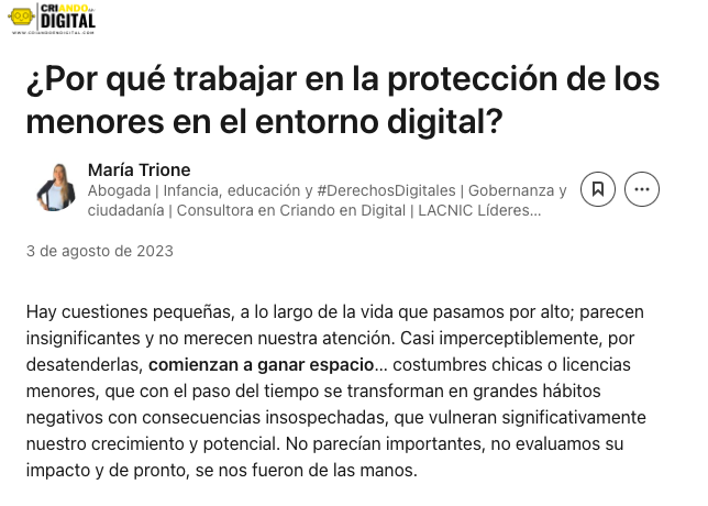 En Criando en Digital abordamos la protección y el bienestar de niñas, niños y adolescentes desde una mirada integral. Por ello, para impulsar y acompañar transformaciones reales, articulamos: educación, derecho, comunicación y tecnología.